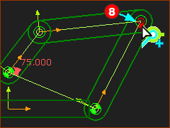 The Points move to together at the new Pin-Joint Degrees-of-Freedom: Each Pin-Joint removes two degrees-of-freedom from the Part. The new Part now has one degree-of-freedom. STEP 3: Do STEP 1 and STEP 2 again