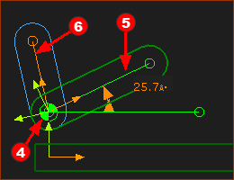 A Slider To add a Motion-Dimension FB (for a Slider) you must select a Slide-Joint, and then one Point from each of the two Lines that define the Slide-Joint. •The properties of the Motion-Dimension FB are determined by the properties of the Slide-Joint. •The properties of the Slide-Joint are determined by the properties of the Lines you select to add the Slide-Joint. •The Lines are defined by their start-Points and end-Points. Therefore, the positive-direction of the Motion-Dimension for a Slider is defined by the start-Point and end-Point of the two Lines in the Slide-Joint. If the positive-direction of the Motion-Dimension is not as you want, you need to add the Lines and Slide-Joint again.